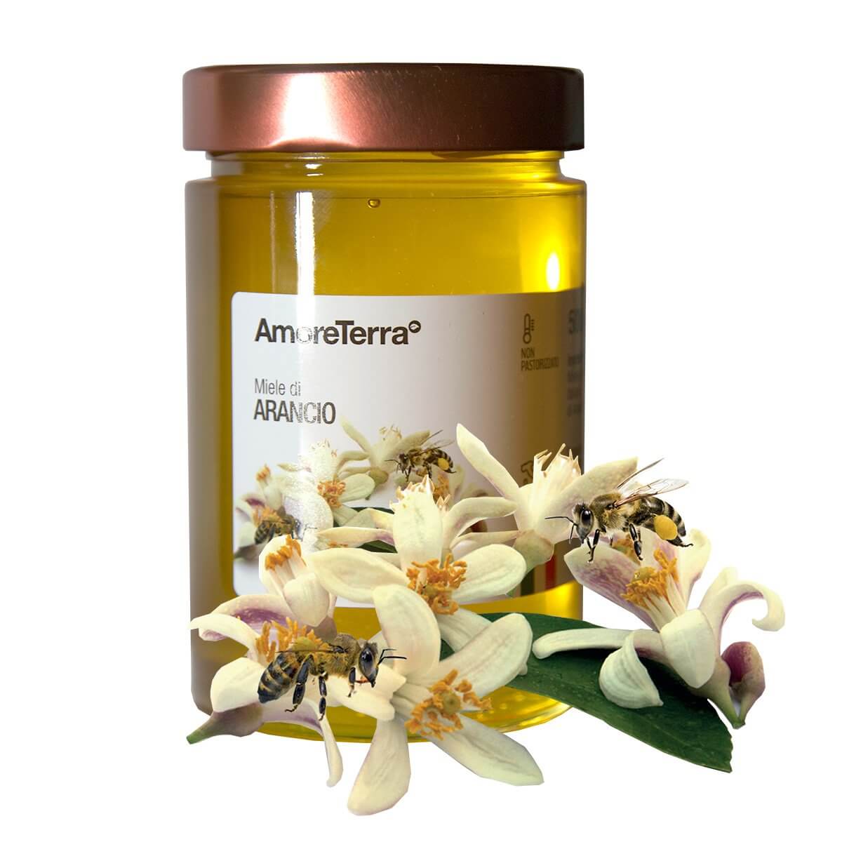 Il Miele di Arancio AmoreTerra è un miele biologico crudo, non pastorizzato, dal profumo intenso e caratteristico dei fiori d'arancio.