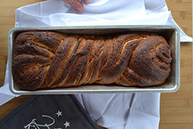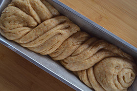 At this point, transfer the braid into a plumcake mould and let it double in size again. Then bake at 180° for approximately 35 minutes (4) .