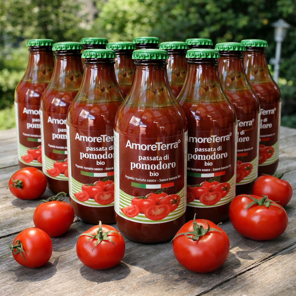 Amoreterra organic tomato puree is a product made with only Italian tomatoes, processed fresh in a bain-marie.